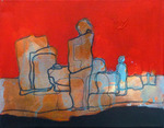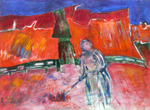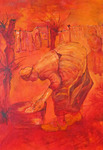 2013Roodgetint schilderij geinspireerd op een zeer kleine zwart-wit tekening van Vincent van Gogh.