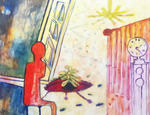 2013Henri Matisse schilderde in vervreemdend perspectief diverse interieuren. Dat inspireerde mij om mijn eigen interieur te schilderen op eigenzinnige wijze in kleurrijke taal. Als een hommage aan Henri Matisse. Er volgden nog 5 schilderijen welke vanuit mijn fantastie op het doek kwamen.
